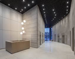 Das komplette Foyer wurde während des laufenden Bürobetriebs entkernt und in mehreren Bauabschnitten neu aufgebaut. Dies war insbesondere bzgl. der Baustellenlogistik eine besondere Herausforderung.